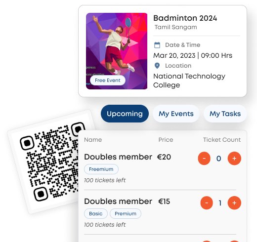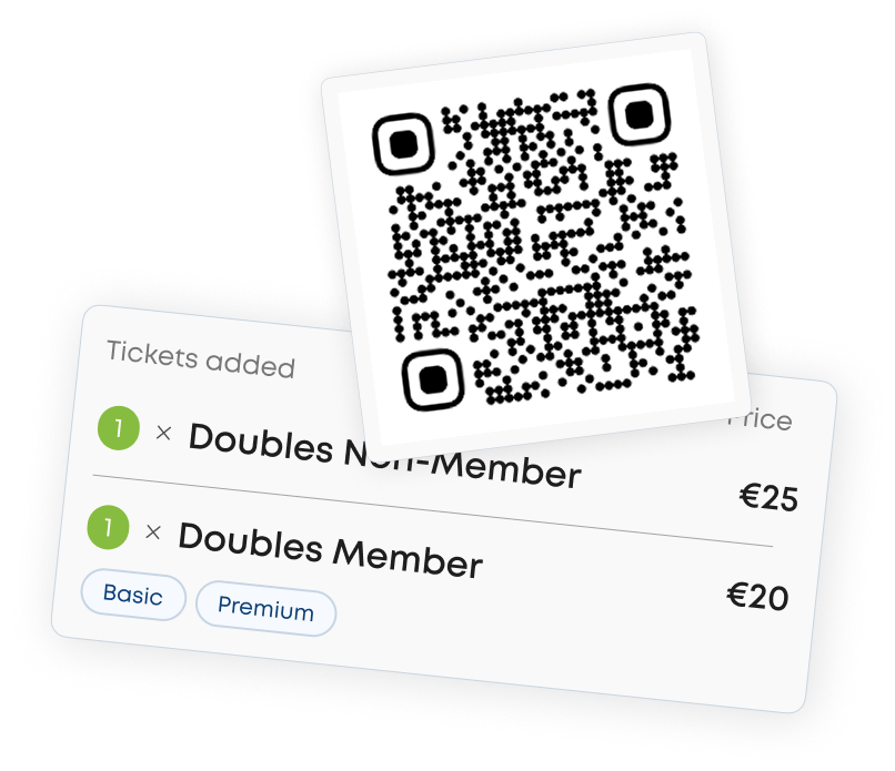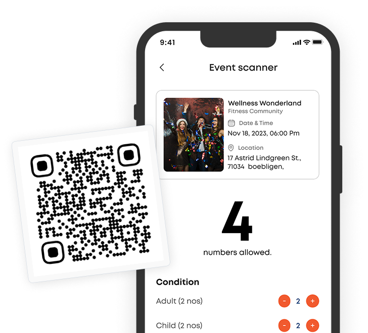 Each ticket has a scannable QR code for quick check-in by event admins.