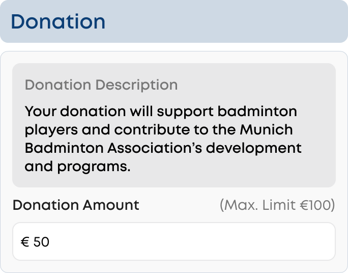 Accept Stripe, PayPal, bank transfer, or cash. Funds go to the community account.