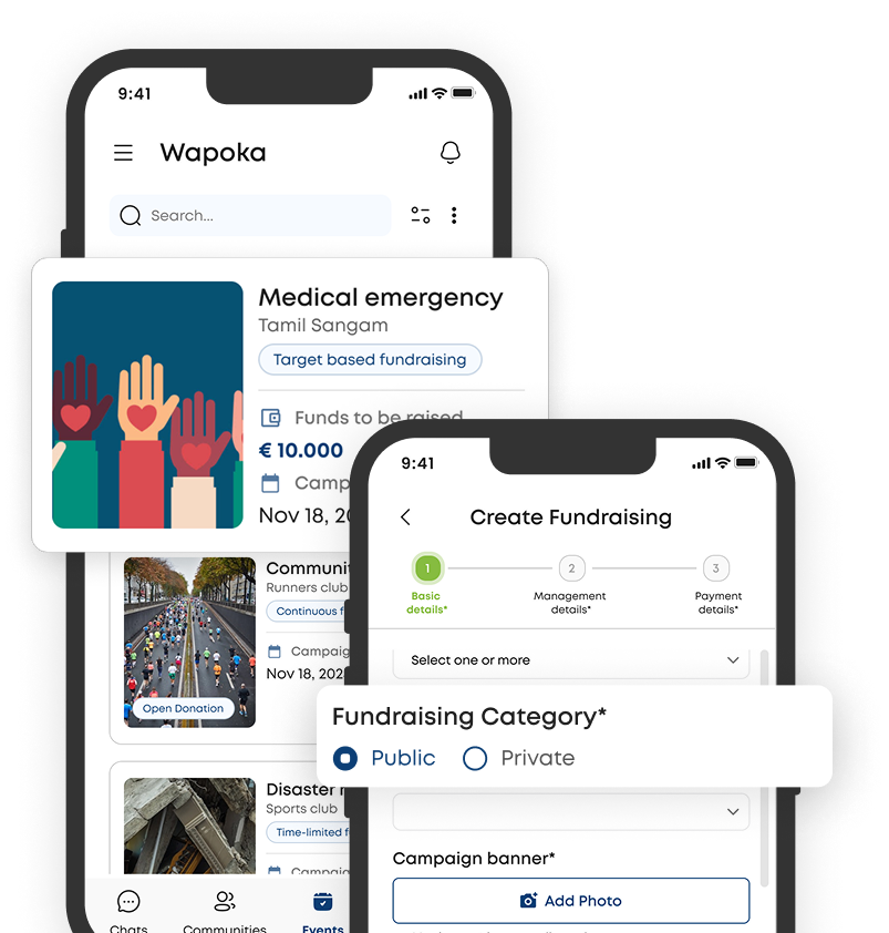Launch and manage fundraising campaingns directly within your community. No external links, no third party tools. Just seamless, secure and shareable fundraising built right into the app