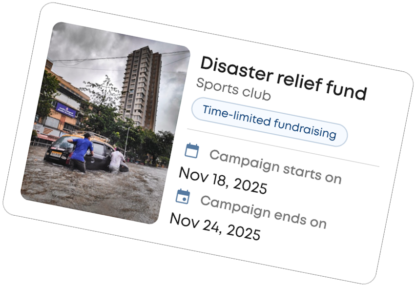 Keep donations open with no end date. Perfect for ongoing causes like community maintenance, scholarships, or social support funds.